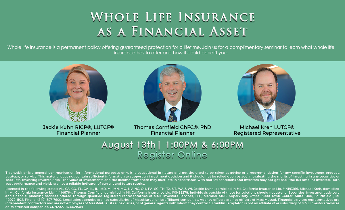 Whole life insurance is a permanent policy offering guaranteed protection for a lifetime. Join us for a complimentary seminar to learn what whole life insurance has to offer and how it could benefit you.